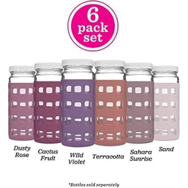 Silicone Glass Water Bottle Covers - Pack of 6 Protection Holders 16-18oz Capacity - Non-Slip Protection for Drinks Containers - Insulated Carrier for Smoothies and Juices (Desert Sunset Pink)