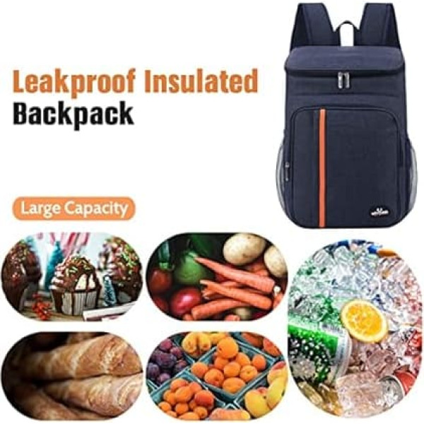 [Premium Materials] The backpack cooler is made of waterproof Oxford material with high density. High density, waterproof and dirt-repellent. [Thermal Insulation] The inner insulation thickens the EPE foam and leak-proof PEVA lining of the cooler backpack to keep things cold or hot for hours and ensure they do not leak. [Multiple Pockets] The bag features a wide opening for easy loading and unloading. There are 2 side mesh pockets for storing drinks, bottles and even umbrellas. The bag also has a front zip pocket to hold napkins and a deep front pocket for storing sweets, keys and other small items. [Large Capacity] The cooler bag has a capacity of 18L and is large enough to hold fruit, lunch and drinks. [Multifunction] It is convenient for a variety of uses, whether you are planning an outdoor picnic for your family, planning a lunch and snacks for your children, or packing cold drinks for outdoor activities. › See more product details