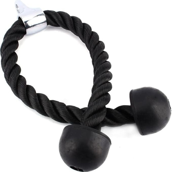 High quality material: made of heavy braided nylon and reinforced swivel Safe and comfortable: large solid rubber ends ensure a secure and comfortable grip Application: For use with weight-stack cable equipment, optimises triceps contraction Benefits: triceps pushdowns help strengthen the most important three muscles on the back of your upper arms responsible for extending or straightening your arm. In addition, it helps your triceps, triceps pushdowns to train your shoulders, abdominal muscles and upper back. When performed as part of your regular strength training routine, pushdowns help you build stronger, tighter triceps MULTI-PURPOSE - Ideal for gym and commercial gyms › See more product details; Product description Description: For use with weight stack cable equipment, optimises triceps contraction. Made from heavy braided nylon and hardened swivel fixings. Ideal for use at home or in the gym. Effectively trains triceps, biceps, shoulders and abs. Large solid rubber ends ensure a secure and comfortable grip. Specifications: Length:70cm Material: nylon Color:Black Box contents: 1 x Tricep Rope; Product description Description: For use with weight stack cable equipment, optimises triceps contraction. Made from heavy braided nylon and hardened swivel fixings. Ideal for use at home or in the gym. Effectively trains triceps, biceps, shoulders and abs. Large solid rubber ends ensure a secure and comfortable grip. Specifications: Length:70cm Material: nylon Color:Black Box contents: 1 x Tricep Rope; Description: For use with weight stack cable equipment, optimises triceps contraction. Made from heavy braided nylon and hardened swivel fixings. Ideal for use at home or in the gym. Effectively trains triceps, biceps, shoulders and abs. Large solid rubber ends ensure a secure and comfortable grip. Specifications: Length:70cm Material: nylon Color:Black Box contents: 1 x Tricep Rope