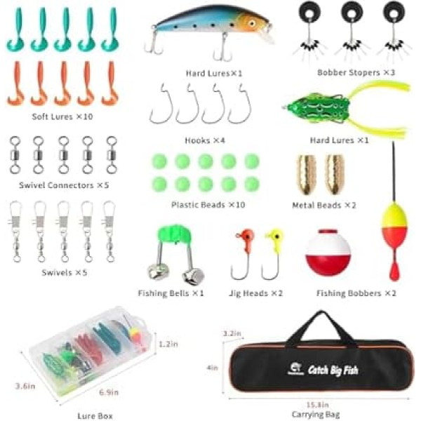 BETTER FISHING GEAR FOR KIDS - This great set contains everything your child needs to fish. It includes fishing rod and reel, fishing accessories with box, travel bag, pliers and fish control. The fishing box contains fishing lure accessories for different situations, so your little angler has the best chance to catch fish. It is worth mentioning that we also offer high-quality fishing lines that hope you fully enjoy the fishing hours 【Starter Fishing Set for Kids】It is specially designed for fishing beginners. For children who are just starting or fishing experience, it is easy to use. This inexpensive children's fishing set makes fishing easy and fun. Safe and easy for children to use: the handles of our children's fishing rods are very soft and lightweight, making them ideal for small children's hands. And it has a handle design that makes it easy for children to use. Allows children to play freely without dropping the rod even in wet conditions. You can be sure that learning with our fishing rod set would give you a safer and easier experience. Easy to carry and store: Our retractable children's fishing rods are foldable for easy portability and space-saving storage. A high quality travel bag also makes it easy to carry the fishing rod and all other fishing accessories and protect them from damage. PERFECT GIFT FOR BOYS AND GIRLS - Go outside and fishing is a great opportunity for kids to get in touch with nature. We are committed to providing our little explorers with high-quality products at affordable prices. It is the most satisfying gift for boys and girls. Hope your little angler will have lots of fun and success in fishing practice › See more product details; Product description Fishing is one of the fun and interesting outdoor activities you can do with your children.; Product description Fishing is one of the fun and interesting outdoor activities you can do with your children.; Fishing is one of the fun and interesting outdoor activities you can do with your children.