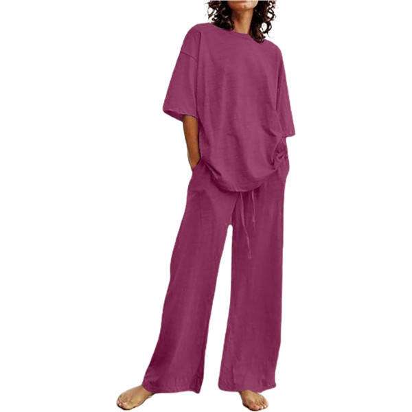 Two-Piece Women's Leisure Suit, T-Shirt Top and Trousers, Trouser Suit, Casual, Loose Lounge Set, Crew Neck, Short Sleeves, Tracksuit, Breathable, Cuddly Sports Outfit, Plain, Elegant Yoga
