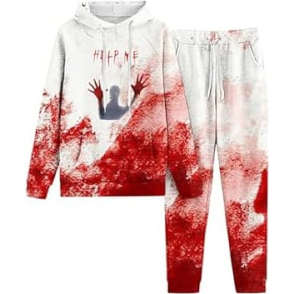 Eauptffy Trainingsanzug Damen Große Größen, Hoodies und Sweatpants, Hoody Set Blutiges Horror Laufenanzug Kappe 2 Teilig Sweatsuit Lockere Freizeit Freizeitanzug Stilvolle Winter Sport Set Jogger