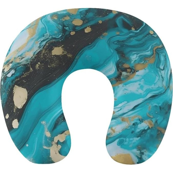 WYUSPGK Reisekissen, Türkis, Blau, Gold, Marmor-Druck, Nackenkissen, U-förmiges Kissen, Reise-Nackenkissen, Memory-Schaum-Kissen, Flugzeugkissen, tragbares Kissen