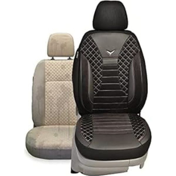 Features: made to measure for driver and passenger, also suitable for active headrests (not removable headrests), made in Germany Material: high-quality car fabric with 5 mm foam lamination/faux leather appliqués Extras: 3-layer system, seat covers suitable for airbags and seat heating, back of the front seats equipped with generous pockets, comfortable and sporty seating experience Assembly: 1. Pull the cover on the seat. 2. Clip/hook attached under the seat. 3. Attach the backrest covers with Velcro fastener Box contents: 1 x seat, 1 x backrest for driver, 1 x seat, 1 x backrest for passenger, 2 x headrest covers, clip/hook, assembly instructions (English language not guaranteed) › See more product details