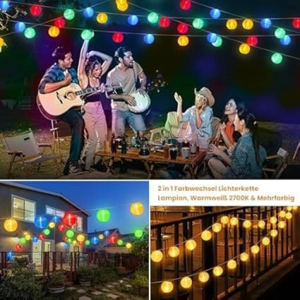 StarryEver 20 m LED Lanterns, Fairy Lights, Outdoor Power, Warm White and Colourful, 11 Modes, Lantern Fairy Lights with Remote Control, 80 LED Chinese Lanterns, Lighting Fairy Lights, Outdoor for