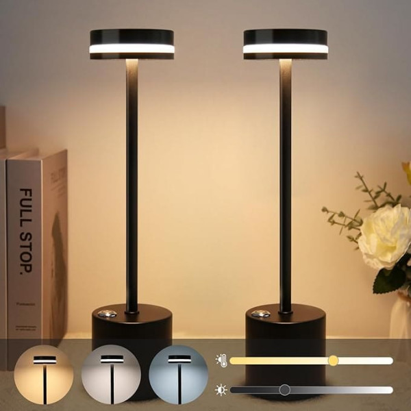 Stylish and energy-saving: the wireless LED table lamp has a black, minimalist design with a modern aperture design that fits perfectly into different living spaces. Choose high-quality aluminium material, built-in 28 pieces LED beads as a light source, uniform light, very energy-saving, lighting without flickering. Adjustable brightness and colour temperature: the wireless LED table lamp has three adjustable colour temperatures (warm/neutral/white) and offers a brightness adjustment from 10% to 100%, short press to turn on/off and for the colour temperature, long press for continuous dimming with memory function. Great gift: LED battery table lamp with unique design and modern fashion style is suitable for a variety of scenes. The three-colour dimming function can provide atmospheric lighting and create a sense of atmosphere for you and your friends and family, perfect for decoration and gifts. Easy to use: the LED battery table lamp is 35 cm high and 8 cm wide, with USB-C charging socket, built-in 5500 mAh battery, which can be used for up to 8 hours (depending on use), can be used as a light source in the event of a power failure or outdoors. Wide application: the LED outdoor table lamp for outdoor use eliminates the need for constant charging, you can use it anytime and anywhere according to your needs, it can be placed anywhere, e.g. indoor and outdoor use, on the dining table, bedside table, desk, etc., and it brings a little warmth to your life. › See more product details