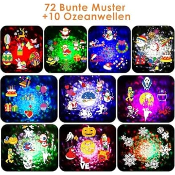 ChicDwell 2-in-1 LED Projector Christmas Outdoor & Indoor, 72 HD Patterns + 10 Wave Effects, IP44 Waterproof with Remote Control and Timer for Christmas, Halloween and Party Decorations