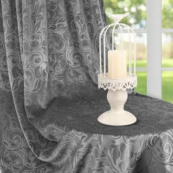 Rosnek Opaque Ruffle Tape, Set of 2, H 244 x W 132 cm, Thermal Curtain, Luxury Velvet Curtains, Opaque with Pattern, Overcurtains, Blackout Baroque Decoration for Living Room, Grey
