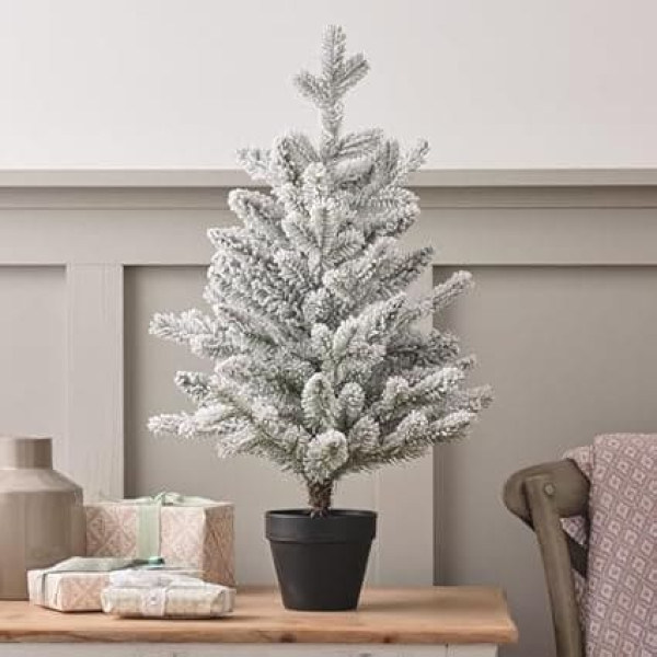 Rustic Christmas decoration - 1 x traditional Christmas tree in pot Festive design – pine needles covered with frost Indoor Christmas decoration: the small Christmas tree is IP20 tested and can be used as a Christmas decoration, table tree, mini Christmas tree High-quality material - The Christmas tree is made from natural-looking plastic, which allows it to be reused every year Dimensions: (H) 60 cm and the pot has a diameter of 13 cm › See more product details; Product description This 60 cm mini Christmas tree will add a magical touch to your Christmas decoration this year. With its delicate snow effect, it creates the atmosphere of a winter forest and brings a fairytale flair to your home. Ideal for small spaces, it fits perfectly on a table, window sill or shelf. For an impressive effect, you can combine it with the smaller version of 45 cm (sold separately) to create a harmonious duo that adds depth and elegance to your decor. Simply wrap a micro LED fairy lights (sold separately) around its branches to achieve an enchanting result. All artificial trees should be loosened and unfolded after unpacking. Then you can arrange them as desired. Depending on how you shape your tree, the dimensions given may vary slightly.; Product description This 60 cm mini Christmas tree will add a magical touch to your Christmas decoration this year. With its delicate snow effect, it creates the atmosphere of a winter forest and brings a fairytale flair to your home. Ideal for small spaces, it fits perfectly on a table, window sill or shelf. For an impressive effect, you can combine it with the smaller version of 45 cm (sold separately) to create a harmonious duo that adds depth and elegance to your decor. Simply wrap a micro LED fairy lights (sold separately) around its branches to achieve an enchanting result. All artificial trees should be loosened and unfolded after unpacking. Then you can arrange them as desired. Depending on how you shape your tree, the dimensions given may vary slightly.; This 60 cm mini Christmas tree will add a magical touch to your Christmas decoration this year. With its delicate snow effect, it creates the atmosphere of a winter forest and brings a fairytale flair to your home. Ideal for small spaces, it fits perfectly on a table, window sill or shelf. For an impressive effect, you can combine it with the smaller version of 45 cm (sold separately) to create a harmonious duo that adds depth and elegance to your decor. Simply wrap a micro LED fairy lights (sold separately) around its branches to achieve an enchanting result. All artificial trees should be loosened and unfolded after unpacking. Then you can arrange them as desired. Depending on how you shape your tree, the dimensions given may vary slightly.