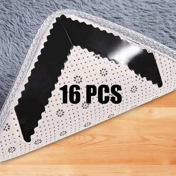 wonhag Teppichgreifer für Hartholzböden, doppelseitig, rutschfest, Teppichgreifer für Fliesenböden, wiederverwendbar, waschbar, abnehmbarer Teppichstopper für Teppiche, Teppiche, Eckgreifer, 16 Stück