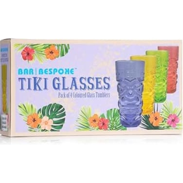 Our glass tiki glasses are back to popular demand for another round of tropical brews while entertaining at home and in the garden. These durable glass jars are packaged in a strong and colourful Bar Bespoke box, safe for shipping or sitting on the shelf The coloured cups in classic tiki shape hold a generous 450 ml 17 cm high and 7 cm diameter Hand wash recommended › See more product details; Product description The Tiki goes back to the beginning of time, he is the Maori counterpart to Adam. The tiki mug is much more recent and originated in post-war America when the soldiers came home. Everything that originated from the Pacific Islands became popular in culture. Our design reflects that of the original ceramic glass and is even more durable, so you can see your latest tropical brew! Ideal for Piña Colada, Mai Tai, Mojitos and other long drinks. Each glass has a capacity of 450 ml and measures 17 cm x 7 cm. Hand wash recommended.; Product description The Tiki goes back to the beginning of time, he is the Maori counterpart to Adam. The tiki mug is much more recent and originated in post-war America when the soldiers came home. Everything that originated from the Pacific Islands became popular in culture. Our design reflects that of the original ceramic glass and is even more durable, so you can see your latest tropical brew! Ideal for Piña Colada, Mai Tai, Mojitos and other long drinks. Each glass has a capacity of 450 ml and measures 17 cm x 7 cm. Hand wash recommended.; The Tiki goes back to the beginning of time, he is the Maori counterpart to Adam. The tiki mug is much more recent and originated in post-war America when the soldiers came home. Everything that originated from the Pacific Islands became popular in culture. Our design reflects that of the original ceramic glass and is even more durable, so you can see your latest tropical brew! Ideal for Piña Colada, Mai Tai, Mojitos and other long drinks. Each glass has a capacity of 450 ml and measures 17 cm x 7 cm. Hand wash recommended.
