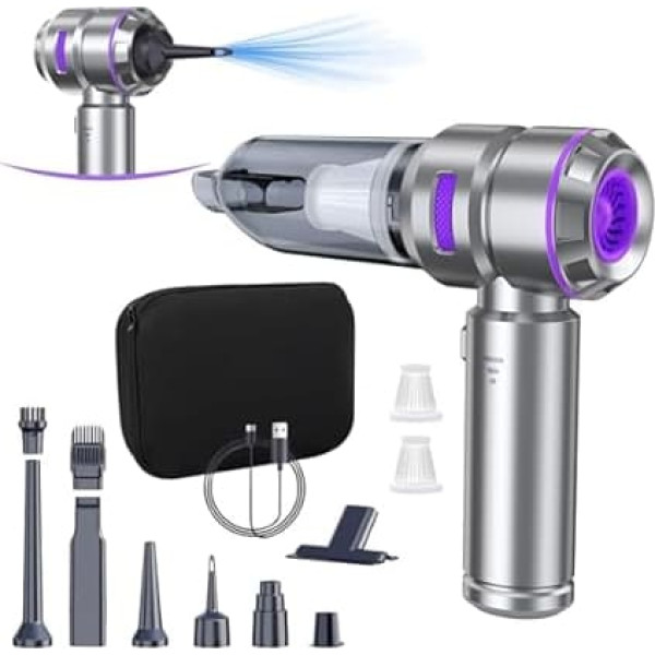Strong 20000PA handheld vacuum cleaner: the cordless handheld vacuum cleaner is equipped with an improved brushless high-speed motor for strong performance. There are three adjustable suction modes of 9000PA, 15000PA and 20000PA, and the strong suction power of 20000PA allows you to remove pet hair, crumbs, dust and sand that hide in sofas, car seats and more. 4-in-1 multifunctional mini vacuum cleaner: mini vacuum cleaner with 13 accessories can meet different application scenarios, such as dust bubbles, vacuuming, compressing, pumping. Not only can it clean hard to clean cracks such as computer keyboards and mainframes, but it can also be taken outside to inflate swim rings or air beds. Wireless and battery: no more tangled cables and no more restricted grip, this handheld vacuum cleaner is wireless and therefore easy to use. It is also equipped with a 6,000 mAh battery, which lasts about 15 to 35 minutes depending on the equipment. Thanks to the power indicator, you can see the battery status at a glance. Large dust container, easy to clean: our portable car vacuum cleaner has upgraded the dust container and filter system, which can effectively deal with more dirt at once, no need to empty it frequently, improve cleaning efficiency. Small and comfortable: the mini handheld vacuum cleaner is small enough to fit in an ordinary drawer, and we also have a storage bag to hold all the accessories, convenient for you to carry on the go. › See more product details