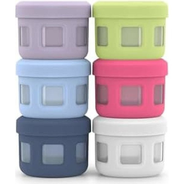 PACKAGE INCLUDED 6 x 4 oz Spice Jars Easily pack your salad dressings, sauces, toppings or dips without worrying about leaks on the go or store your delicious sauces for later. 【Mighty Durable】These containers are made of durable BPA-free plastic and reinforced with silicone sleeves to withstand falls. PERFECT SIZE 4 oz is the perfect size for hummus, nut butter, dips, salad dressings and more. It's not just for snacks - store craft supplies and all sorts of small treasures for later. LEAK PROOF Our screw on lids come with rubber rings to lock in freshness and prevent annoying spills in your lunch box. Enjoy your meals without worrying about leaks. Dishwasher-safe – all parts are BPA-free and dishwasher safe to make cleaning a breeze! › See more product details; Product description Dive, darken and shovel with ease. Our small plastic condiment containers are a perfect size of 4 ounces, ideal for packing hummus, nut butter, dips, dressings and more. The threaded lid ensures a leak-proof seal, making them perfect for lunch on the go without anything spilling in your bag. Whether at home or on the go, these containers are a great addition to your healthy snack habits. And when your lunch break is over, just put it in the dishwasher for easy cleanup.; Product description Dive, darken and shovel with ease. Our small plastic condiment containers are a perfect size of 4 ounces, ideal for packing hummus, nut butter, dips, dressings and more. The threaded lid ensures a leak-proof seal, making them perfect for lunch on the go without anything spilling in your bag. Whether at home or on the go, these containers are a great addition to your healthy snack habits. And when your lunch break is over, just put it in the dishwasher for easy cleanup.; Dive, darken and shovel with ease. Our small plastic condiment containers are a perfect size of 4 ounces, ideal for packing hummus, nut butter, dips, dressings and more. The threaded lid ensures a leak-proof seal, making them perfect for lunch on the go without anything spilling in your bag. Whether at home or on the go, these containers are a great addition to your healthy snack habits. And when your lunch break is over, just put it in the dishwasher for easy cleanup.