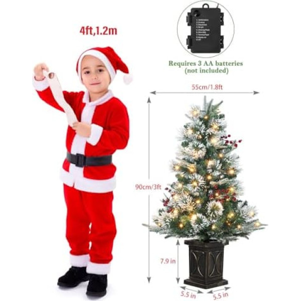 Christmas Tree, 90 cm, 2 Pieces, Artificial Christmas Tree with Lighting, Artificial Christmas Tree Snow-Flocked with 78 LEDs, 8 Modes, Warm White, Retro Pot Base, Christmas Decoration for Entrance,