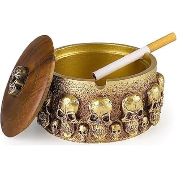 Skull ashtray retro gold skull appearance decorations, ideal for decoration or Halloween style. This strange human skull ashtray is a bold example, it can be a work of art in home decoration. High Quality Materials This ashtray is made of strong resin material, which has a smooth surface, which is easy to use and clean. The skull ashtray is intricately carved and hand painted by skilled craftsmen for more than 10 years. It is worth noting that handmade resin ashtrays have some small holes, which is normal. PERFECT SIZE 4.37 x 4.37 x 2.44 inches, Weight 20 oz. Suitable for family, home, bar, cafe, party, buffet, etc. International products have separate terms, are sold from abroad and may differ from local products, including fit, age ratings, and language of product, labeling or instructions. › See more product details; Product description 【Satisfaction Guarantee】We have strict quality control before shipping to ensure you get the perfect ashtray. If you are not completely satisfied with your purchase, please contact us directly, we will reply within 24 hours. We will try our best to solve your problem.; Product description 【Satisfaction Guarantee】We have strict quality control before shipping to ensure you get the perfect ashtray. If you are not completely satisfied with your purchase, please contact us directly, we will reply within 24 hours. We will try our best to solve your problem.; 【Satisfaction Guarantee】We have strict quality control before shipping to ensure you get the perfect ashtray. If you are not completely satisfied with your purchase, please contact us directly, we will reply within 24 hours. We will try our best to solve your problem.