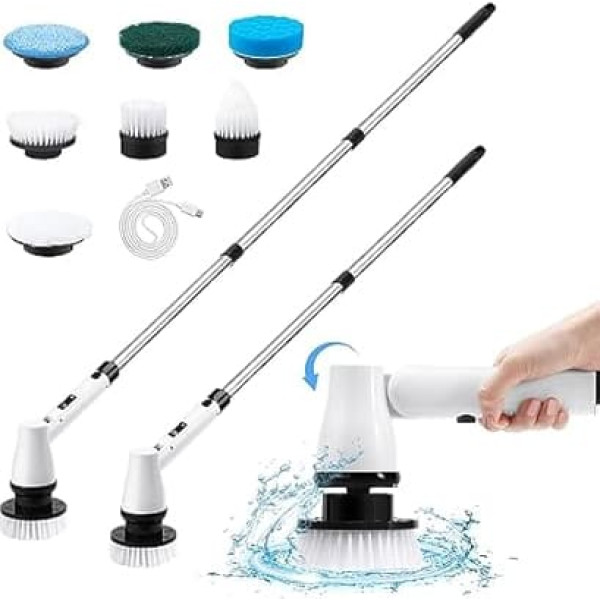 Powerful electric spin scrubber: unlike traditional cleaning brushes, this electric cleaning brush allows you to do housework with the most relaxed posture and save your tired body. Because the brush set has 2 working speeds, 360r/min high speed mode and 280r/min low speed mode, you can easily clean your whole house in one stroke with this electric spin scrubber. Enjoy the housework now! Length and angle adjustable: In view of daily needs, we expand the adjustable length of the scrubber. The long handle is 137 cm (54 inches), the short handle is 30 cm (12 inches), which can help you clean hard-to-reach areas without bending and kneeling. And the electric scrubber has 3 adjustable angles (90°, 115°, 180°). So you can clean even hard-to-reach areas freely and cover all corners of the house. 【7 Versatile Brush Heads】The electric scrubber comes with 7 different brush heads such as flat brush, dome brush, corner brush, sponge, scrubbing brush, fabric brush and wool-like brush that meet all your cleaning needs. You can choose the right combination to clean the stains in different cleaning environments, especially for bathroom and kitchen. It is great for curves, tiles, sinks, toilets, bathtubs, door slits, shower trays and windows. Type-C fast charging and waterproof: Equipped with 2500 mAh battery with large capacity, wireless electric cleaning brush can provide 90 minutes long time work after 3 hours fast USB charging. With one charge, you can clean the whole house. The highly sealed IPX7 design makes it not worry about malfunctions caused by water ingress. Cordless scrubber design increases the convenience of house cleaning work. Ideal gift for your family: Are you tired of bending your back or kneeling on the floor to clean with mop and cloth? The electric powerful spin scrubber can help you easily remove stubborn stains and significantly reduce your working time from 1 hour to 15 minutes. Save your time and effort and make your housework easier, more efficient and fun. A perfect gift for parents, wife, mother, the elderly, etc. › See more product details