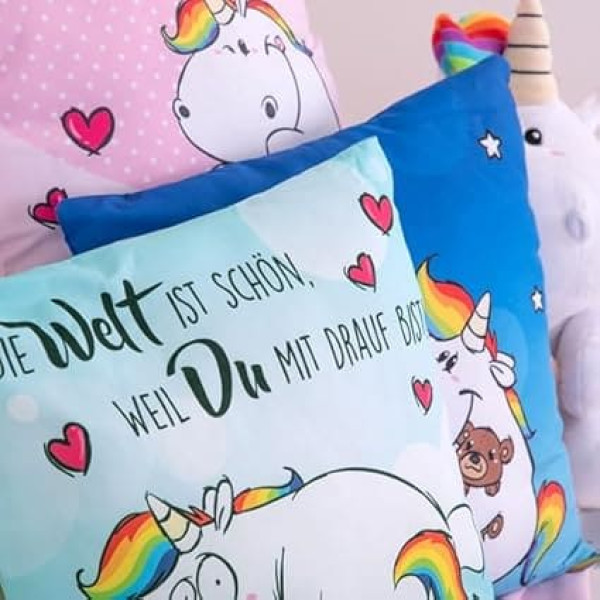 Herding Cushion Pummel Unicorn, 40 x 40 cm, Set of 3, Soft Decorative and Cuddly Cushion for Children, 100% Polyester