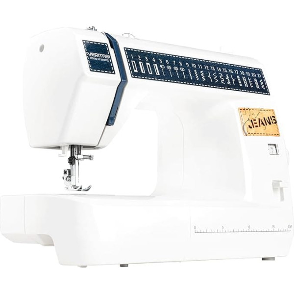 The perfect sewing machine for all jeans fabrics – the VERITAS JSB21 jeans sewing machine impresses with its robust construction and high punch, so sewing thick jeans is no challenge. It is also possible to sew zips. The sewing machine comes with an extensive accessory sewing kit Snap-on sewing foot system and 5 sewing feet – the snap-on sewing foot system makes it easier to change the presser feet. By simply clicking in the presser feet, the machine is ready to use again in no time at all. Includes the following presser feet: universal presser foot, zigzag foot, buttonhole foot (4 steps), straight stitch foot and standard zip foot 800 stitches per minute – with a speed of 800 stitches per minute, the JSB21 sewing machine is ideal for many sewing work. It has a high torque and puncture force, so that even solid fabrics can be processed effortlessly. Shortening curtains and trousers or sewing sleeves is possible quickly and accurately with the VERITAS sewing machine for beginners Many different stitches possible – the special jeans sewing needles ensure a flawless sewing result for solid fabrics. The maximum stitch width in the zigzag stitch is 5 mm, the maximum stitch length is 4 mm. The machine can sew quilt stitches, decorative stitches, stretch stitches and overlock stitches VERITAS Sewing machines: VERITAS sewing machines have stood for the highest quality and demands for over 125 years. The sewing machines are innovative and impress with their outstanding functionality. The range includes mechanical sewing machines, computer-controlled and overlock sewing machines. Suitable for beginners, intermediates and professionals › See more product details; Product description Veritas JSB21 Sewing Machine; Product description Veritas JSB21 Sewing Machine; Veritas JSB21 Sewing Machine
