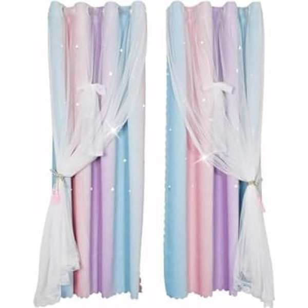 DIMENSIONS & PACK: Blackout curtain with bow knots, set of 2 package, each panel measures 52 inch wide by 84 inch height. The rod is not included. EASY INSTALLATION Quick installation in just a few seconds with built in rings. The rings are durable enough and tear-resistant. It glides very smoothly. BLACKOUT & THERMAL INSULATION 2 layer drapes window curtains with blackout fabric provides room darkening and privacy. Ideal for nursery curtains. Hollow star design: cut-out hollow star design adds a beautiful taste to your children's room. Made of high-quality polyester fabric, the nursery curtain is odourless, skin-friendly and can be hung naturally. EASY CARE Machine washable. Wash in cold water on a gentle cycle. Do not bleach. Iron at low temperature if necessary. › See more product details