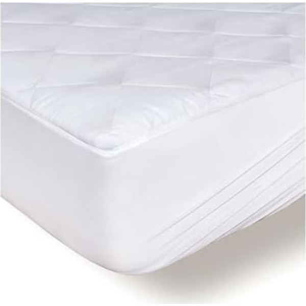 The Dreamzie mattress protector is just the thing for your bed. Enjoy peaceful and restful nights with this high quality quilted mattress topper for optimal comfort and protection. Perfect fit: this mattress topper has a bridge for mattresses with a depth of 30-40 cm and a durable elasticated hem for an ideal fit. This allows Alese to fit perfectly to the mattress and does not slip when you move. COMFORTABLE & NOISE - The quilted surface of this fitted sheet provides a pleasantly soft feel for dreamy nights. The 2mm thick mattress cover is comfortable and silent as it is made of a soft material that does not slip when moving. SOFT AND BREATHABLE - The soft mattress protector with Oeko-Tex certificate guarantees peaceful and restful nights. It is breathable, wicks heat and sweat away and keeps you cool. Its polyester ensures good air circulation between you and your mattress. EASY CARE Machine wash at low temperature, tumble dry on low heat, do not bleach, do not iron and do not dry clean. › See more product details