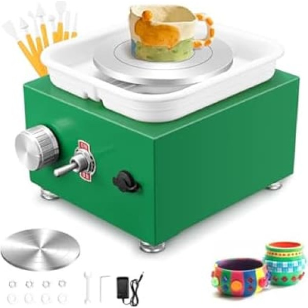 Stable and adjustable speed: the electric mini potter's wheel uses a high-quality motor with stable rotation speed. The speed of the turntable can be automatically adjusted and the height of the turntable can also be adjusted to a comfortable angle according to the personal height. It can be used without any basic knowledge. The operation is simple and convenient, and beginners do not have to worry about operating problems. High quality and difficult to rust: the electric turntable uses a high-quality metal turntable that does not rust easily after prolonged exposure to water. The turntable is equipped with a waterproof basin that effectively prevents mud and water from splashing, and you don't have to worry about your clothes getting dirty during operation. The waterproof basin can also be disassembled for cleaning, making it easy to clean without increasing the amount of work and effectively keeping the desk tidy. Safe and convenient to use: there is a leakage protection switch on the underside of the pottery wheel ceramic machine. Please follow the instruction manual when using. You don't have to worry about safety. We recommend that you use a voltage range of 100 to 240 V. In addition, the noise of the motor is very low, so there will be no problems with prolonged use. Reduce damage to the eardrum and protect physical and mental health. Children's best friend: Our pottery set for children can strengthen the hand muscles and endurance of our children. By shaping different crafts, their imagination and creativity can also be well trained, and they can also keep away from electronic devices in their spare time. It is a good companion in the growth process of children. Lightweight and versatile: our pottery wheel ceramic machine has a compact structure, a small footprint, a light weight, is easy to store and the beautiful colours can also make you happy. It can be used in ceramic lessons or at home to meet the needs of ceramic enthusiasts. › See more product details