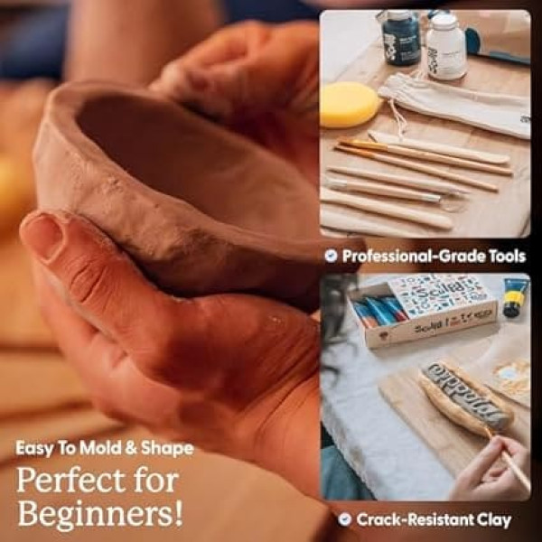 Complete air-drying clay kit: your Sculpd Home pottery set contains everything 2 people need to easily shape, paint, paint and finish beautiful waterproof flower pots, sculptures, vases and more. What you get: 4.4 pounds air dried premium clay, 5-piece modelling tool set, white acrylic paint set with 2 fine brushes, waterproof matte varnish, pottery sponge, step-by-step instructions and video tutorials. THE BEST AIR DRYING CLAY We use only the highest quality British air drying clay. It is natural, soft, lightweight and very easy to shape. Sculpd Air Drying Premium Clay does not require an oven or pottery oven. Enjoy a beautiful natural stone grey colour with a smooth and easy to paint finish. MUCH TO SHARE FOR TWO Experience the perfect pottery gift, date night set, and hobby craft kit. Our video tutorials make shaping and painting from clay fun and easy for anyone, even beginners. Matte varnish: The exclusive matte varnish from Sculpd has been specially developed for air-dry clay. It gives your ceramic pieces a natural looking matte finish and makes them 100% waterproof! › See more product details