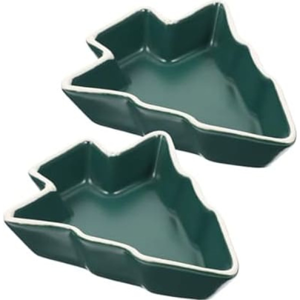 Angoily Set of 2 Christmas Tree Shaped Plates Ceramic Christmas Serving Tray Tableware Christmas Snack Sweets Appetizer Serving Plates Biscuits Candy Container For