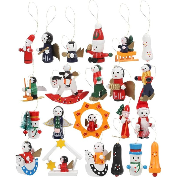 PRETYZOOM Set of 24 Christmas Wooden Ornaments Handmade Miniature Christmas Tree Party Decorations
