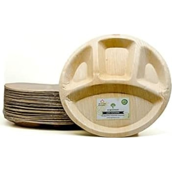 Ecogreenware® 25 Disposable Palm Leaf 4 Divider Plates 12" Round 100% Biodegradable Party Tableware & Compostable Plates I for Weddings, Parties, BBQs and Picnics