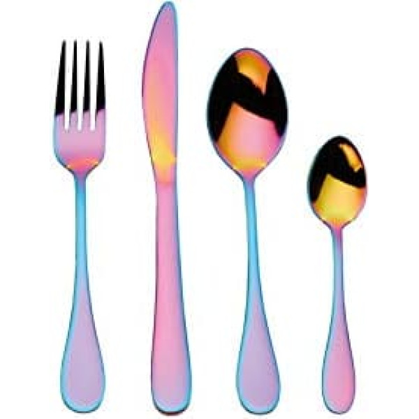 Colour on the dining table: the shimmering cutlery set from Mikasa brings all the colours of the rainbow to your dining table Quality goods: each cutlery piece is made of stainless steel, ideal for everyday use and special affairs Set of 16: a full cutlery set for 4 people, with 4 forks, 4 knives, 4 dessert spoons and 4 teaspoons Gift set: the stainless steel cutlery set comes in a gift box and makes a great gift for weddings, anniversaries or housewarming Useful information: the Mikasa cutlery set is dishwasher safe and comes with a 20 year guarantee › See more product details