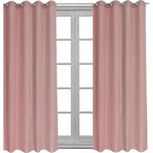 Cleanlevel EST 2016 Blackout Curtain with Eyelets, 140 cm x 245 cm, Opaque Thermal Curtain, Heat Insulating, Living Room Curtains (2, Dusky Pink)