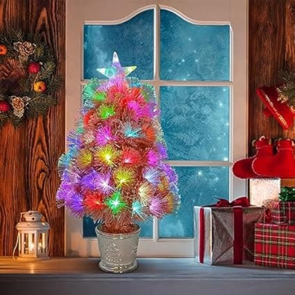 VEYLIN Small Christmas Tree 60cm Pink Fibre Optic Christmas Tree for Home Office Decoration