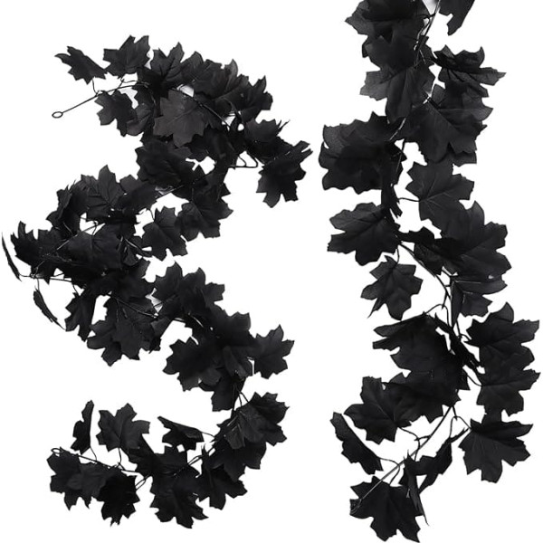 PACKAGING WITH BLACK LEAF DECOR The black leaf garland Halloween is approx. 1.7m long, the package includes 2 black maple leaves and 4 hooks, very easy to hang, you can easily hang the fall leaves garland anywhere. MULTIPLE USES Black leaves garland can decorate fireplaces, balconies, gardens, dining rooms, offices, living rooms, bedrooms and create a romantic atmosphere for your fall theme parties, Halloween decorations, Thanksgiving dinners and Christmas parties. Black leaf garland can be used indoors and outdoors, and will not fade in rain and sunlight. Black fall leaves are perfect for Thanksgiving/wedding/birthday parties. Fall Garland Material :Artificial black maple is made of high quality plastic and silk cloth leaves, the appearance is lifelike, like real leaves. The fall leaves garland will not fade or wither from rain or sunlight, just a simple wipe, no trimming required. And it does not take up your storage space and can be easily folded for storage. International products have separate terms, are sold from abroad and may differ from local products, including fit, age ratings, and language of product, labeling or instructions. › See more product details