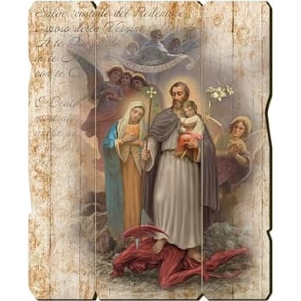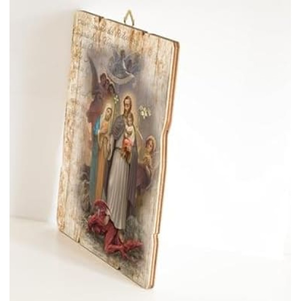 Fratelli Bonella | Vintage Style Wooden Picture of Saint Joseph, Protector of the Holy Family, Dimensions: 28.5 x 35.5 cm, Made in Italy