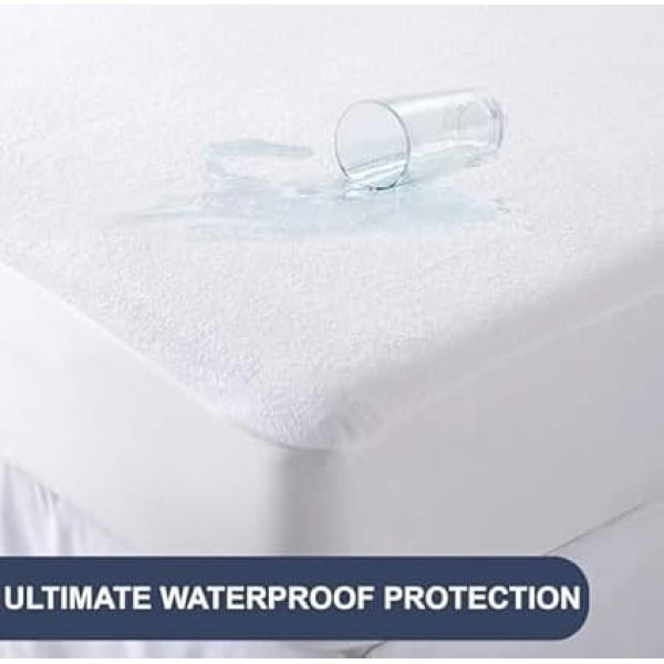 IDEAL FIT FOR ANY BED SIZE This mattress protector is designed for Single (91 x 190 cm), Double (137 x 190 cm), King (152 x 200 cm) and Super King (180 x 200 cm), with the ability to stretch up to 30 cm deep. It stays securely in place all night and ensures a cozy and comfortable sleep. Waterproof Protection Our mattress protector features a waterproof barrier that prevents liquid from seeping through and keeping your mattress clean and dry. Perfect for protecting against spills, accidents and daily wear and tear, ensuring your mattress lasts longer. FITTED SHEET STYLE Our mattress protector comes in a fitted sheet style, making it easy to put on and take off. The elastic edges ensure a snug fit on mattresses of all sizes, preventing slipping or bunching during the night for an undisturbed sleep. SOFT TERRY TOWELING FINISH Enjoy the comfort of a soft terry surface on our mattress protector. Made of polyester fabric, it feels gentle against the skin while adding an extra layer of coziness. It is also easy to clean and maintain, providing long lasting comfort and protection. Noiseless & Quiet Experience a peaceful sleep with our silent mattress protector. Made of high quality materials, it ensures no crackling or rustling sounds, allowing you to move freely without interference. Enjoy uninterrupted rest with protection that stays calm all night. › See more product details; Product description Protect your mattress from spills, stains and accidents with this waterproof mattress protector. Fits Single, Double, King and Super King It features a hypoallergenic fitted sheet that creates a barrier against moisture, dust mites and other allergens. Made of breathable and soft fabric, allows air to circulate and keeps your mattress dry and fresh. The midnight color adds a touch of elegance to your bedroom. This protector is easy to care for and can be machine washed and dried to ensure long-lasting protection for your mattress investment. Stay comfortable and worry-free with this essential bedding accessory.; Product description Protect your mattress from spills, stains and accidents with this waterproof mattress protector. Fits Single, Double, King and Super King It features a hypoallergenic fitted sheet that creates a barrier against moisture, dust mites and other allergens. Made of breathable and soft fabric, allows air to circulate and keeps your mattress dry and fresh. The midnight color adds a touch of elegance to your bedroom. This protector is easy to care for and can be machine washed and dried to ensure long-lasting protection for your mattress investment. Stay comfortable and worry-free with this essential bedding accessory.; Protect your mattress from spills, stains and accidents with this waterproof mattress protector. Fits Single, Double, King and Super King It features a hypoallergenic fitted sheet that creates a barrier against moisture, dust mites and other allergens. Made of breathable and soft fabric, allows air to circulate and keeps your mattress dry and fresh. The midnight color adds a touch of elegance to your bedroom. This protector is easy to care for and can be machine washed and dried to ensure long-lasting protection for your mattress investment. Stay comfortable and worry-free with this essential bedding accessory.