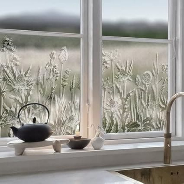 funlife Opaque Window Film Botanical Opaque Privacy Film Window Thickened Flowers Decorative Window Film Thistle and Dandelion 58 x 120 cm