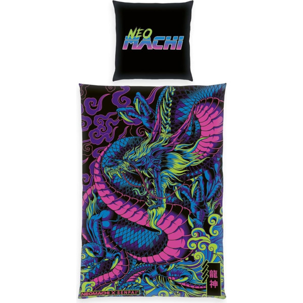Herding Neomachi Dragon Bed Linen, Pillowcase 80 x 80 cm with Zip and Reversible Motif, Duvet Cover 135 x 200 cm, with Zip, 100% Cotton/Renforcé