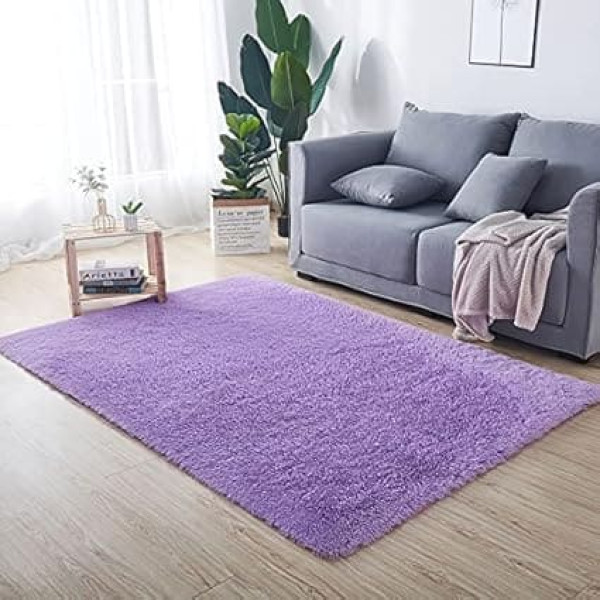 VOFUSHON Living Room Deep-Pile Rug, Shaggy Hallway Runner Rug, Modern, Fluffy, Soft Rug, Large for Living Room Decoration/Bedroom/Children's Room (200 x 300 cm, Purple)