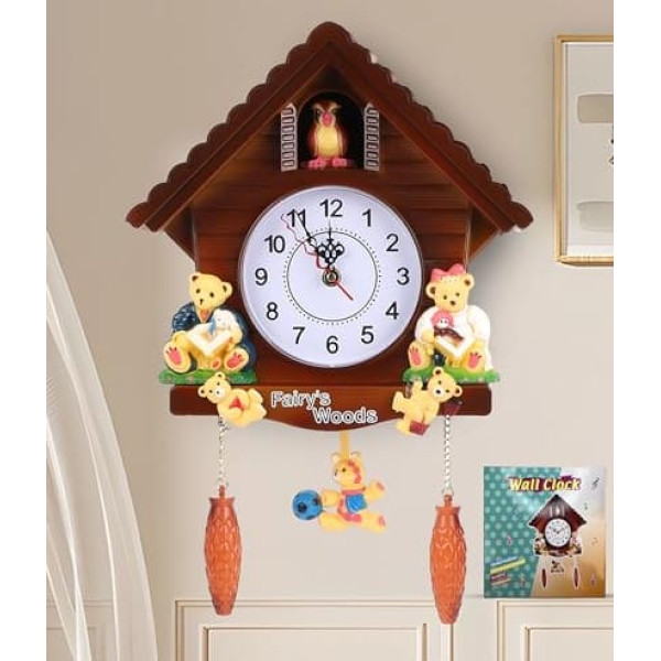 MADE FROM HIGH QUALITY PLASTIC: This cuckoo clock is made of high quality plastic. Every detail is carefully shaped to ensure impeccable quality and longevity. Large Arabic numerals: the time value of this Coo-Coo watch is made of large Arabic numerals. Large, clear numbers and hands, the time display is clear at a glance. There are several colours and patterns available. CUCKOO CUCKOO CUP: This bird clock that sings at every full hour, chirps the cuckoo when the time is up, the physical object moves - the bird pops out, excellent clock to decorate children's rooms. Height: the size of this cuckoo clock for children is approx. 42 cm, large wall clock with large Arabic numerals for easy reading. Batteries not included GREAT GIFT This is a heartfelt gift for anyone who loves to combine old world traditional design with clear modern aesthetics. It will look classy in the study, office, bedroom, living room, kitchen and more. › See more product details