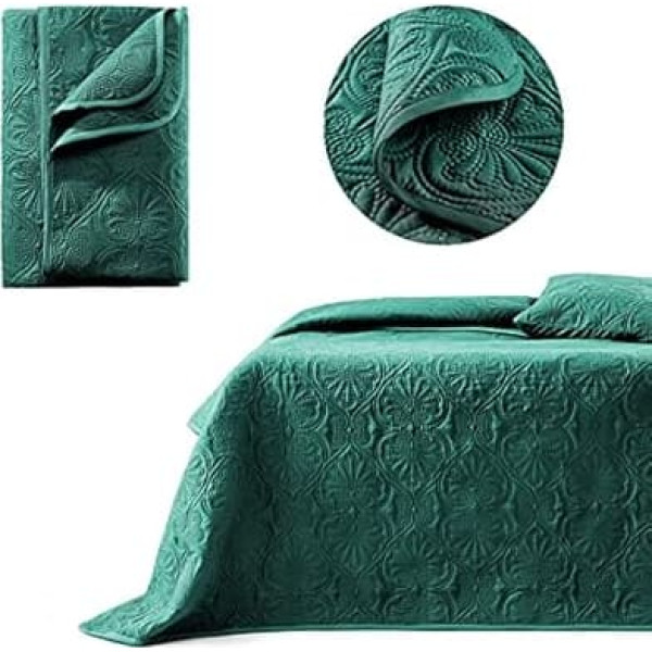 ROOM99 Leila Elegant Bedspread in Dark Green, 170 x 210 cm, Versatile Blanket as a Bed Throw or Sofa Throw, Throw Blanket for Bed and Sofa, Quilt Style, Ideal as Bedspread