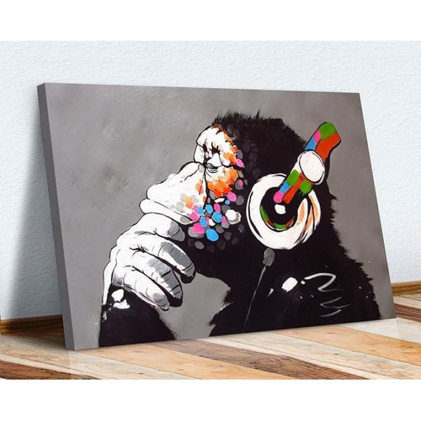 CanvasArtShop Banksy Canvas Art Print Monkey Thinking Gorilla 8 in x 12 in / 20 cm x 30 cm