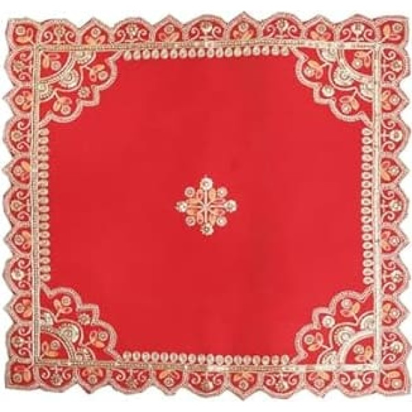 Handmade Pooja cloth Aasan Mat from India is Ideal for Devi or Goddess idols during holy rituals. Size: 28 inches x 28 inches, colour: red, material: velvet cloth with sequence work. This Mat Aasan is made of delicate cloth with golden lace, are light in weight and quite appealing. This can be use as aasan Mat or on top of choki , chowki , pooja table, deity thrones, wooden bajot, Pooja thali cover ,Idol base cloth , back drop . Use in Pooja puja rituals ; tika ; navratri ; diwali ; holi ; festival or any Indian Festival to Worship and Decoration. High Quality Handmade Exclusive Pooja Puja Items article & decoration. › See more product details; Product description Pooja Aasan, Asana or its call Holy Vastra, Very Important and most needed part of any pooja puja. This Beautiful Aasan Mat are used for placing on Mata ki Chowki, Puja tables, deity thrones, wooden bajot, It is used as back drop for Krishna, Durga and other deity idols to brighten the aura. Also used as a curtain for puja altar or mandir. These Puja Aasans are high quality product and available in attractive designs, Size & Colours. You can make your Puja Room brighten by using these aasans. These can be easily incorporated in varied home settings. small or big. You keep this as a throne under idols. It is used during religious functions, ceremonies and prayer rituals. Multipurpose aasan made from cloth and it has attractive golded thread and sequence work which bring bright aura to your home temple mandir during any festival occasion puja pooja or celebration.; Product description Pooja Aasan, Asana or its call Holy Vastra, Very Important and most needed part of any pooja puja. This Beautiful Aasan Mat are used for placing on Mata ki Chowki, Puja tables, deity thrones, wooden bajot, It is used as back drop for Krishna, Durga and other deity idols to brighten the aura. Also used as a curtain for puja altar or mandir. These Puja Aasans are high quality product and available in attractive designs, Size & Colours. You can make your Puja Room brighten by using these aasans. These can be easily incorporated in varied home settings. small or big. You keep this as a throne under idols. It is used during religious functions, ceremonies and prayer rituals. Multipurpose aasan made from cloth and it has attractive golded thread and sequence work which bring bright aura to your home temple mandir during any festival occasion puja pooja or celebration.; Pooja Aasan, Asana or its call Holy Vastra, Very Important and most needed part of any pooja puja. This Beautiful Aasan Mat are used for placing on Mata ki Chowki, Puja tables, deity thrones, wooden bajot, It is used as back drop for Krishna, Durga and other deity idols to brighten the aura. Also used as a curtain for puja altar or mandir. These Puja Aasans are high quality product and available in attractive designs, Size & Colours. You can make your Puja Room brighten by using these aasans. These can be easily incorporated in varied home settings. small or big. You keep this as a throne under idols. It is used during religious functions, ceremonies and prayer rituals. Multipurpose aasan made from cloth and it has attractive golded thread and sequence work which bring bright aura to your home temple mandir during any festival occasion puja pooja or celebration.