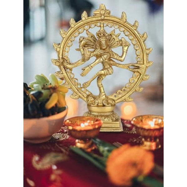 Nataraja figure - Brass Statue Dancing Shiva Color: shiny gold Dimensions: approx 17 x 14 x 4 cm, Weight: 0,520 kg Material: pure yellow brass Craft, direct import from India › See more product details; Product description Fein verarbeitete Skulptur aus reinem Messing des Hindu-Gottes Nataraja. Die Hindu-Gottheit mit vier Armen ist eine Manifestation der Schöpfung Gottes Shiva und ist das bekannteste Symbol des Hinduismus. Shiva verkörpert nicht nur die Schöpfung, sondern auch die Zerstörung und Neuschöpfung des Universums.; Product description Fein verarbeitete Skulptur aus reinem Messing des Hindu-Gottes Nataraja. Die Hindu-Gottheit mit vier Armen ist eine Manifestation der Schöpfung Gottes Shiva und ist das bekannteste Symbol des Hinduismus. Shiva verkörpert nicht nur die Schöpfung, sondern auch die Zerstörung und Neuschöpfung des Universums.; Fein verarbeitete Skulptur aus reinem Messing des Hindu-Gottes Nataraja. Die Hindu-Gottheit mit vier Armen ist eine Manifestation der Schöpfung Gottes Shiva und ist das bekannteste Symbol des Hinduismus. Shiva verkörpert nicht nur die Schöpfung, sondern auch die Zerstörung und Neuschöpfung des Universums.