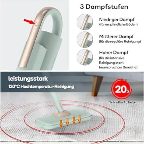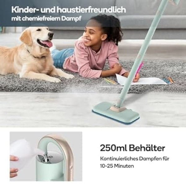 [All-In-1 Steam Cleaner and Handheld Steam Cleaner] Get ready for a versatile cleaning experience with this all-in-one steam cleaner! The high performance of efficient microfiber cloths and non-slip carpet gliders allow easy removal of stubborn stains from sealed hard floors and refresh carpets. The removable handheld steam cleaner and attachments allow you to conveniently handle hard to reach areas for a thorough cleaning Powerful steam cleaning: with 3 adjustable steam modes, the steam intensity can be easily controlled. This device is equipped with a powerful 1200 W steamer that heats up in just 20 seconds and reaches temperatures of up to 248 °F - which allows a quick and effective conversion of water into steam to thoroughly remove dirt, impurities, grease and stubborn stains on various indoor and outdoor surfaces Large water tank and versatile attachments: With a 250 ml water tank, this steam cleaner offers a continuous cleaning time of up to 10-25 minutes, ideal for various cleaning needs, beyond just floors and carpets. Equipped with versatile attachments, this steam cleaner simplifies cleaning tasks for windows, joints, furniture, and even for your vehicle's interior and exterior Lightweight and comfortable: Made from lightweight, yet durable plastic and equipped with a slim design, this steam cleaner weighs only 3.96 pounds and is therefore easy to handle. The swivel mop head, along with the extended rods and an extra long power cable of 16 feet, allows you to effortlessly clean hard-to-reach areas. In addition, it can be conveniently stored in any corner of your home [Extensive Package Content] This package contains everything you need for comprehensive cleaning: a handheld steam cleaner, 2 extension poles, a mop head, a carpet glider, 2 washable microfiber cloths, 2 nylon brushes, a brass brush, a puller bar, a triangle brush, a steam jet nozzle, a split brush and a water filling funnel. We also offer a one-year warranty as well as professional and friendly customer support › See more product details