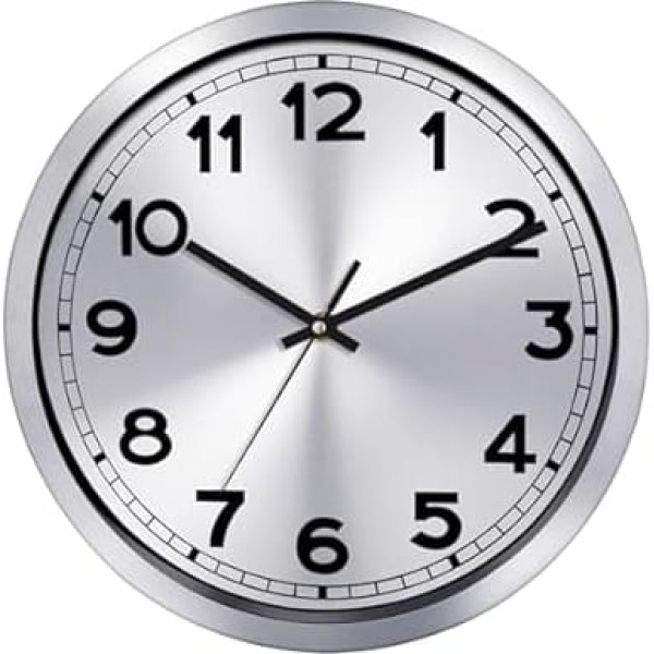 Plumeet Wall Clock, 30 cm Battery Operated Wall Clock with Silver Aluminium Frame, Non-Ticking, Silent Metal Wall Clocks, Decorative Kitchen, Living Room, Bedroom