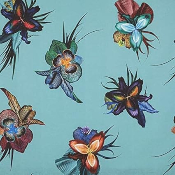 Kt KILOtela - Canvas Fabric Digital Print Slate Cushion Curtains Half Panama Cotton Patchwork 100cm Long x 280cm Wide Tropical Floral Green Blue Multicolor - 1 Metre