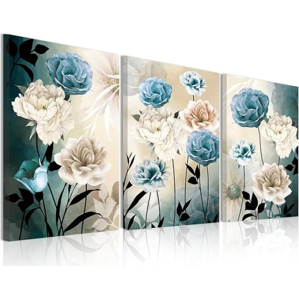 BINCUE Vintage Flowers Wall Pictures, Blue and White Flowers Canvas Wall Art, Elegant Flowers Pictures, Wall Decoration, Modern Botanical Canvas Pictures for Bedroom, Living Room, Office Decoration,