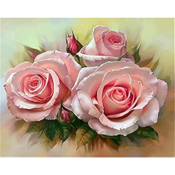 CaptainCrafts Paint by Numbers Adults, Paint by Numbers Kit Contains Pigments Linen Canvas Brush DIY Oil Painting Warm Gift (with Frame, Pink Roses Flower)