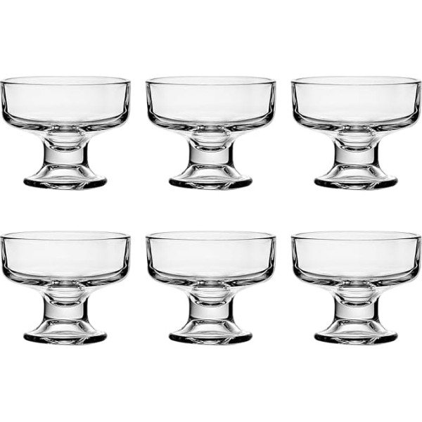 6 PACK ICE CREAM CUPS: made of high quality clear smooth glass. Lead-free and healthy, environmentally friendly, safe for eating and drinking. Clear dessert glasses glass: classic glass body sits comfortably in the hand. Wide base easy to use. Ideal gift for housewarming, parties, weddings and events. PERFECT SIZE & EASY TO CLEAN Capacity 189cc, perfect size to enjoy your ice cream. Dishwasher and refrigerator safe. Simply clean the dessert glasses with water and dry them with a soft cloth. Widely Used The glass dessert cup set is perfect for ice cream, trifle, parfait, sundaes, pudding, yogurt, fruit, candy, nuts, candy, salad, snack, cocktail, spices, sundries and holiday party. Warranty: If you received the products are defective, please contact us as soon as possible. We guarantee you a replacement or refund. › See more product details; Product description Dessert glasses glass - 189 ml ice cup glass - dessert bowls glass set of 6 for ice cream cups small items The Parfait and nuts, clear mini foot dessert cups, lead-free glass; Product description Dessert glasses glass - 189 ml ice cup glass - dessert bowls glass set of 6 for ice cream cups small items The Parfait and nuts, clear mini foot dessert cups, lead-free glass; Dessert glasses glass - 189 ml ice cup glass - dessert bowls glass set of 6 for ice cream cups small items The Parfait and nuts, clear mini foot dessert cups, lead-free glass