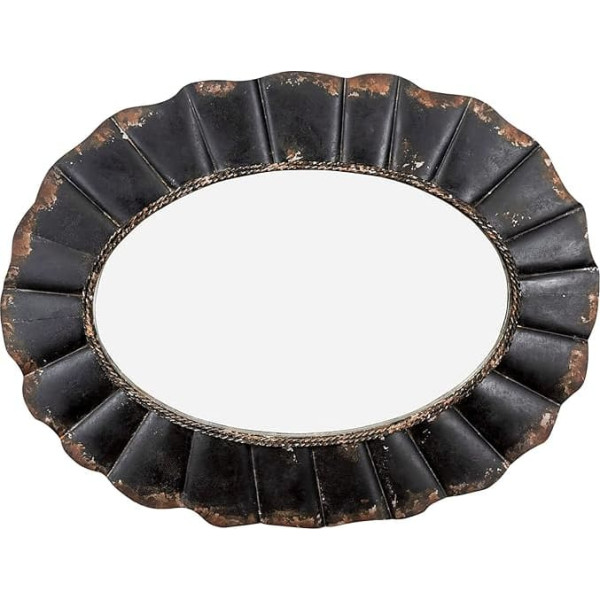 Creative Co-op Oval Mirror with Distressed Black Scalloped Metal Frame